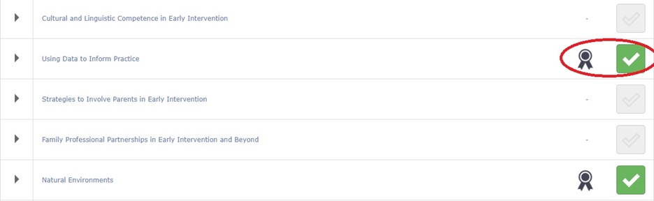 You can also navigate to the “My Progress” tab once you sign in where you’ll find a list of the available modules with an icon to view your certificate if you’ve completed the full module and the module is eligible for credit.